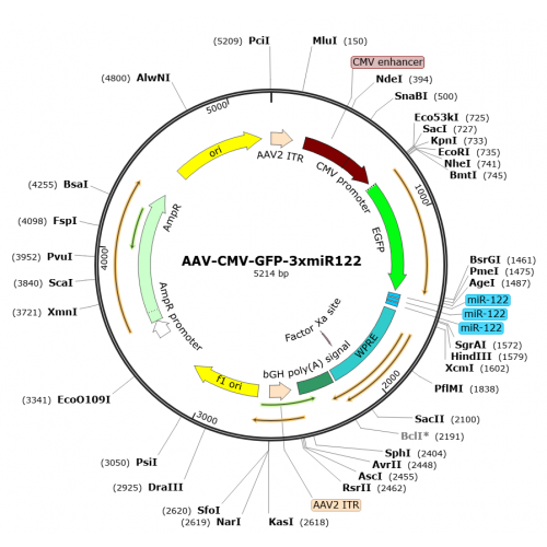 | Product Category: | Premade recombinant AAV; AAV(BI30)-CMV-GFP-3xmiR122; AAV(BI30)-GFP-3xmiR122 |