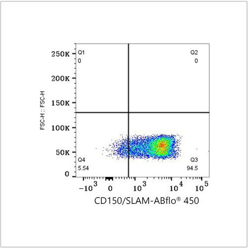 ![]() | Flow cytometry: 1×10^6 Human PBMC were surface-stained with ABflo® 450 Rabbit IgG isotype control (5 μl/Test,left) or ABflo® 450 Rabbit anti-Human CD150/SLAM mAb (A26363,5 μl/Test,right). |
